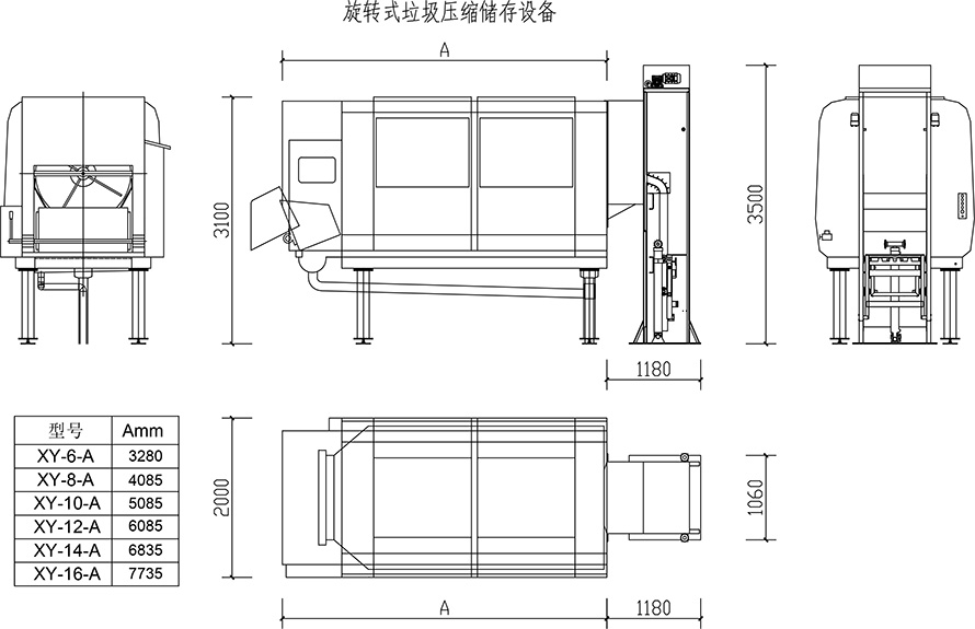 8、提升機:設置在設備的前方,配合標準制式120L、240L、260L、塑料垃圾收集桶使用。