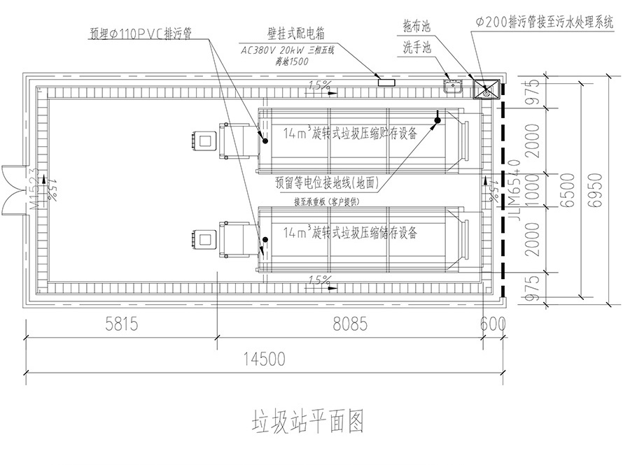 3、設備垃圾投入口一側(cè)的下方預留ø160排污管。